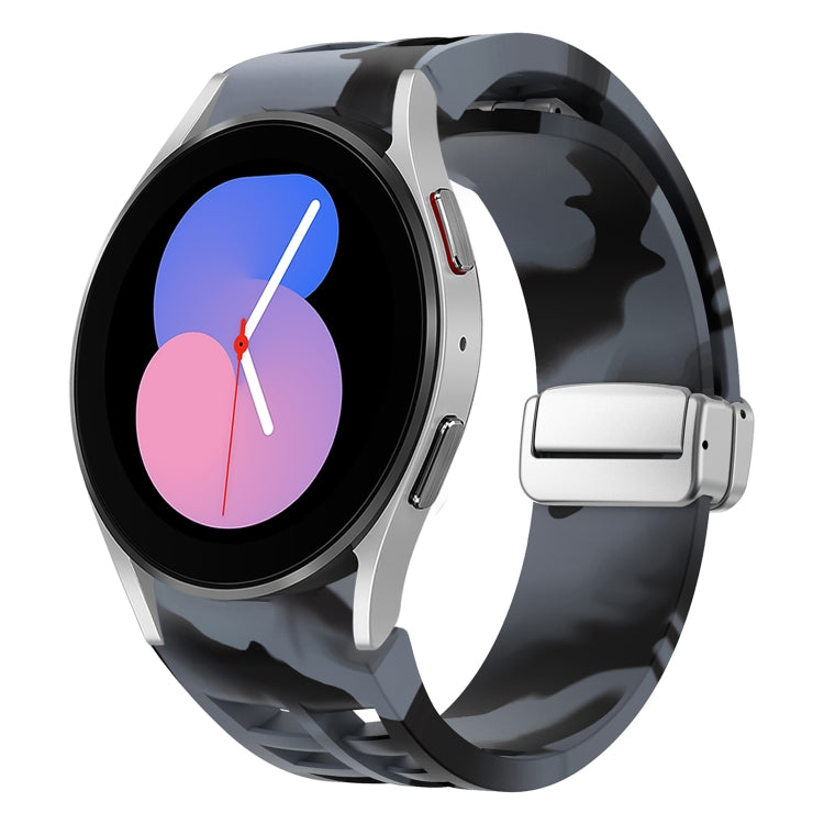 Correa de Silicona Samsung Galaxy Watch 5 40/44mm con Hebilla Plateada y Cierre Magnético (Camuflaje Negro y Gris)