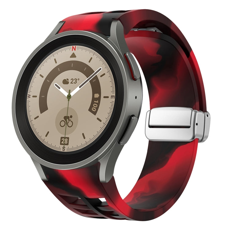 Correa de Silicona Richard para Samsung Galaxy Watch 5 Pro 45mm con Hebilla Plateada y Cierre Magnético (Camuflaje Negro y Rojo)
