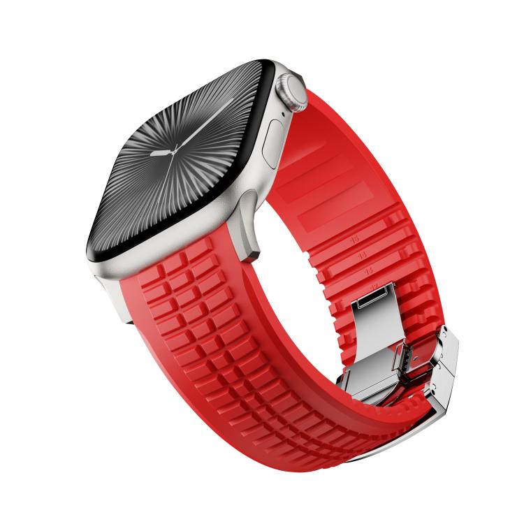 Correa de silicona con hebilla plegable y textura moleteada para Apple Watch de 46 mm, 49 mm, 45 mm y 44 mm (rojo titanio)
