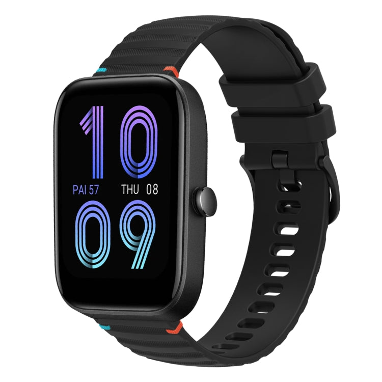Correa de Silicona para Reloj Amazfit Bip 3 Pro 20mm con Puntadas Onduladas y Puntos (Negra)