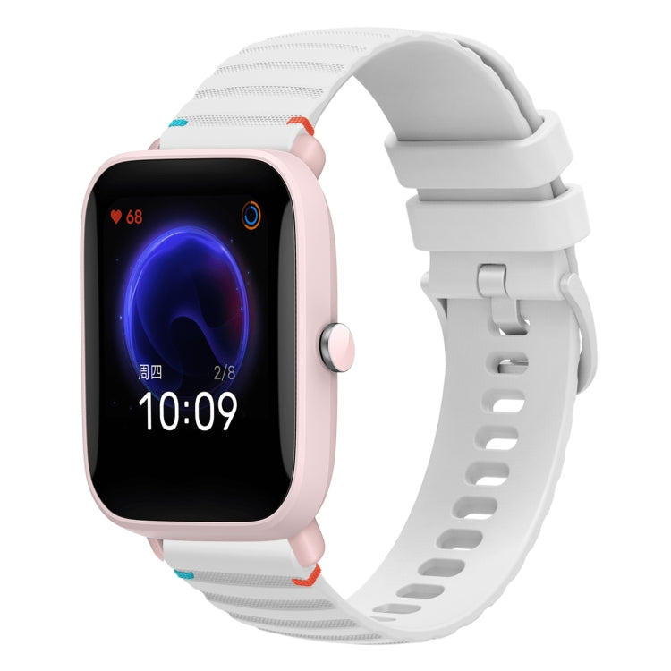 Correa de Silicona para Reloj Amazfit Bip U 20mm con Puntadas Onduladas y Puntos (Blanca)