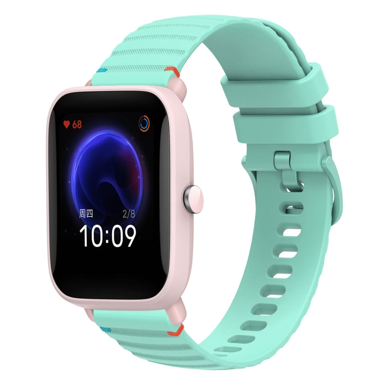 Correa de Silicona para Reloj Amazfit Bip U 20mm con Puntadas Onduladas y Puntos (Verde Azulado)