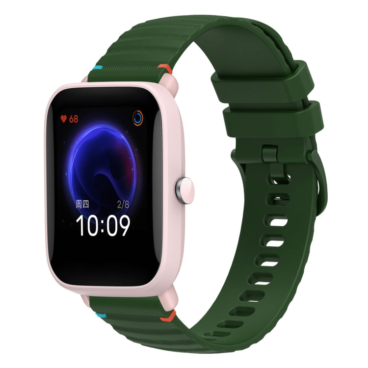 Correa de Silicona con Puntadas Onduladas y Puntos para Reloj Amazfit Pop Pro 20mm (Verde Militar)