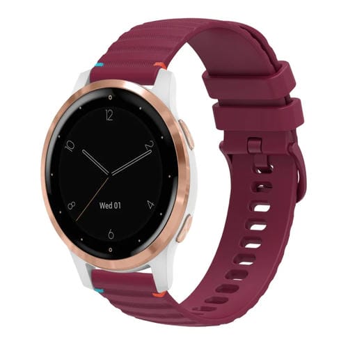 Correa de Silicona Garmin Vivoactive 4S 18mm Puntadas Onduladas (Rojo Vino)