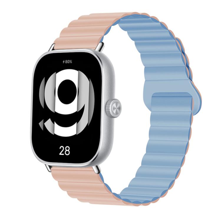 Correa de silicona magnética con hebilla inversa para VivoWatch GT / iQOO Watch GT (Arena Rosa + Azul Brumoso)