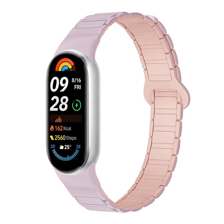 Correa de silicona magnética de tres cuentas para Xiaomi Smart Band 10/9/8 (morado claro y rosa)