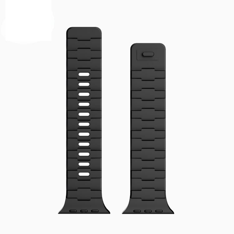 Correa de silicona magnética de un solo pasador con relieve de caballo para Apple Watch de 46 mm / 49 mm / 45 mm / 44 mm (negra)