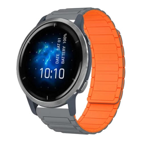 Correa de Silicona Magnética en I para Reloj Garmin Venu 2 22mm (Gris y Naranja)