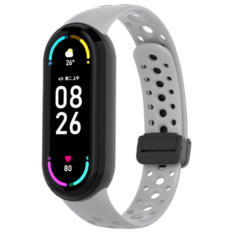 Correa de silicona magnética negra con hebilla para Xiaomi Smart Band de 10/9/8 agujeros (Gris nublado)