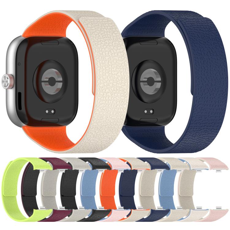 Correa de silicona magnética suave con textura de lichi y conector metálico para Xiaomi Smart Band 9 Pro y Redmi Watch 5 (azul niebla blanca)