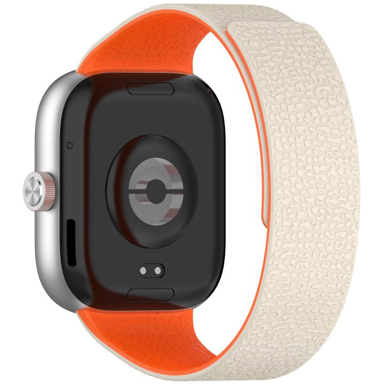 Correa de silicona magnética suave con textura de lichi y conector metálico para Xiaomi Smart Band 9 Pro y Redmi Watch 5 (naranja estrellado)