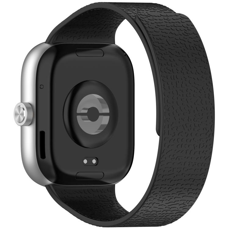 Correa de silicona magnética suave con textura de lichi y conector metálico para Xiaomi Smart Band 9 Pro y Redmi Watch 5 (negra)