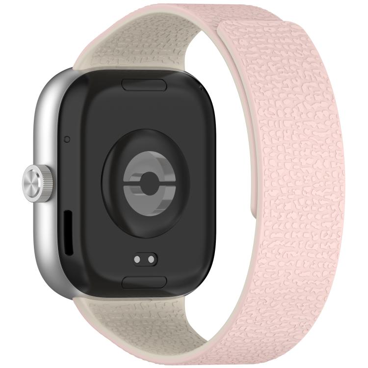 Correa de silicona magnética suave con textura de lichi y conector metálico para Xiaomi Smart Band 9 Pro y Redmi Watch 5 (rosa estrella)