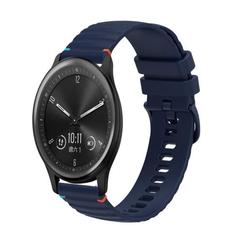 Correa de Silicona para Reloj Garmin Vivomove 20mm con Puntadas Onduladas y Puntos (Azul Marino)
