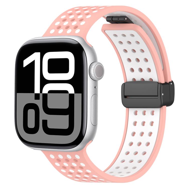 Correa de silicona transpirable con hebilla magnética para Apple Watch de 42 mm, 41 mm, 40 mm y 38 mm (rosa y blanco)