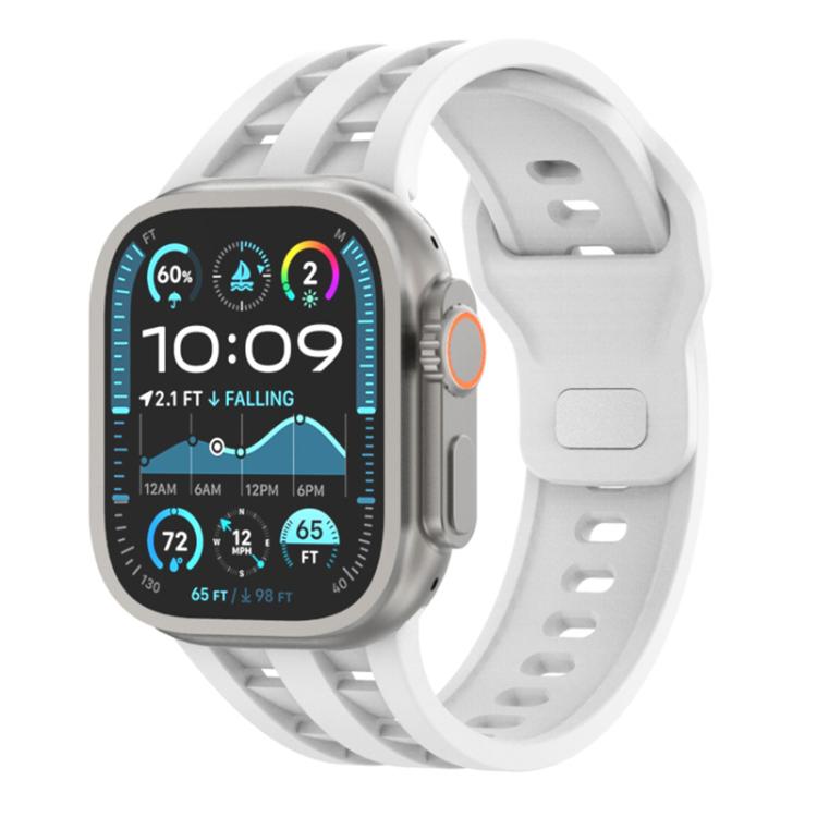 Correa de silicona transpirable de doble fila para Apple Watch de 46 mm, 49 mm, 45 mm y 44 mm (blanca)