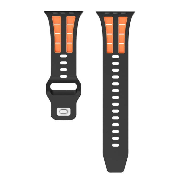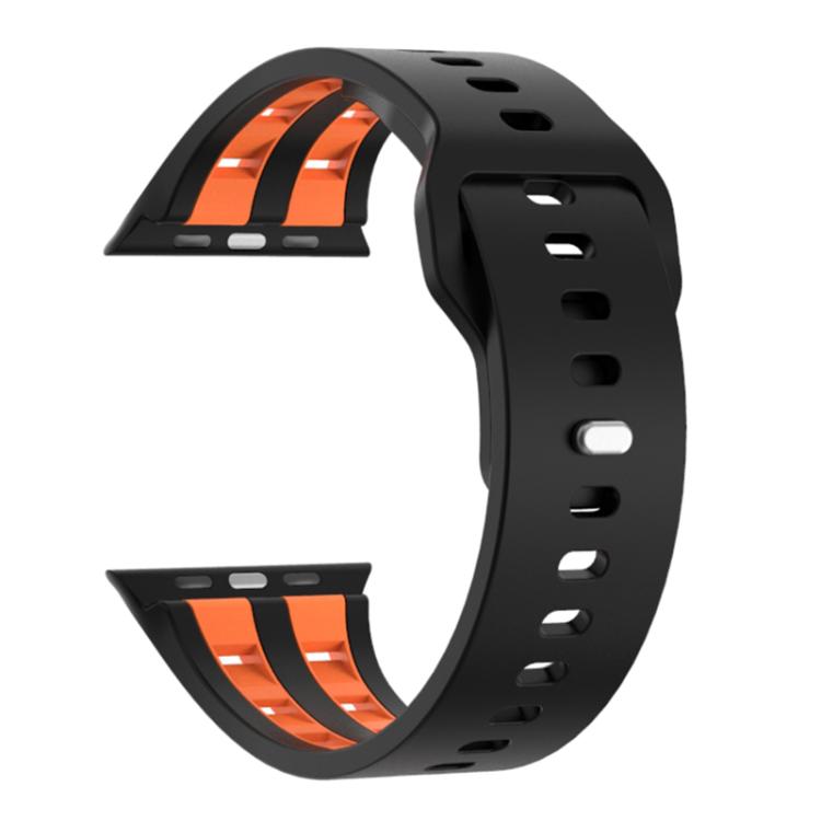 Correa de silicona transpirable de doble fila para Apple Watch de 46 mm, 49 mm, 45 mm y 44 mm (negro y naranja)