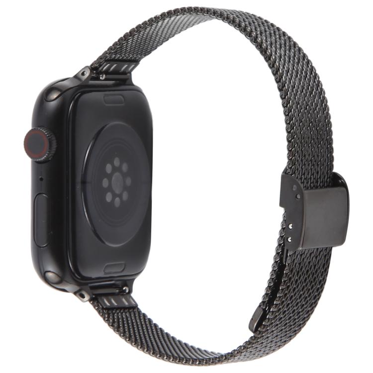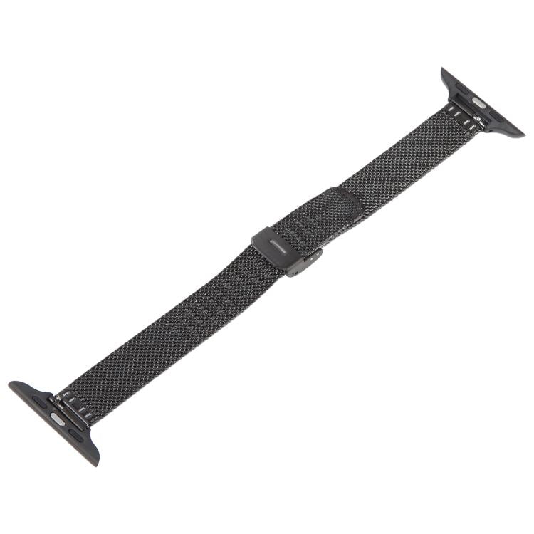 Correa fina de metal milanés con hebilla integrada en relieve para Apple Watch de 42 mm, 41 mm, 40 mm y 38 mm (negra)