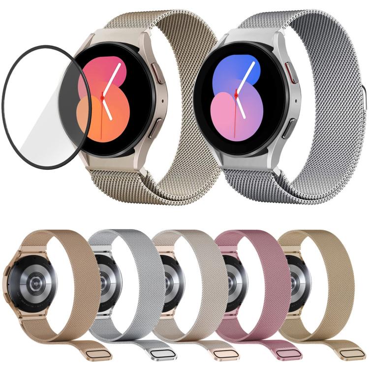 Correa magnética milanesa de acero inoxidable con película curva 3D para Samsung Galaxy Watch6 de 40 mm (plateada)