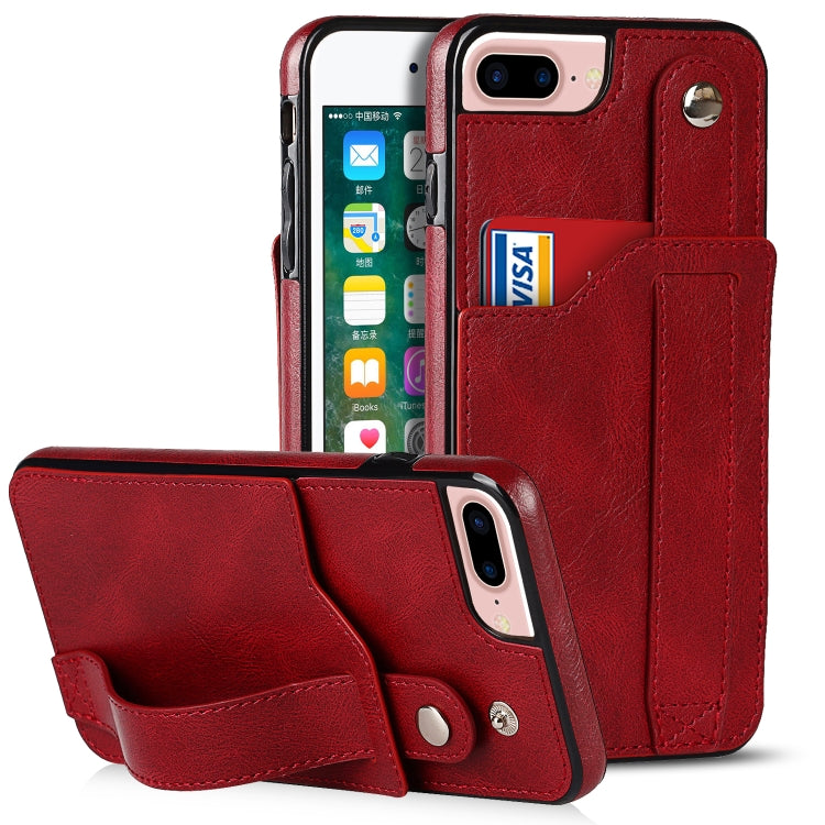 Funda de Cuero Crazy Horse Texture TPU + PU para iPhone 7 Plus / 8 Plus con Ranura para Tarjeta y Soporte de Correa de Muñeca (Rojo)
