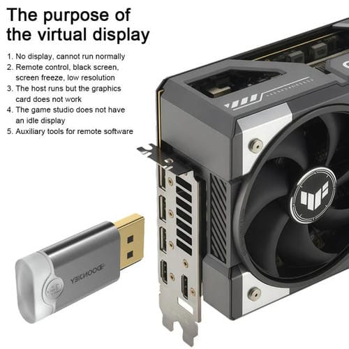 DOONJIEY - Emulador de pantalla con interfaz DisplayPort para tarjeta gráfica, monitor virtual con luz indicadora (plateado)
