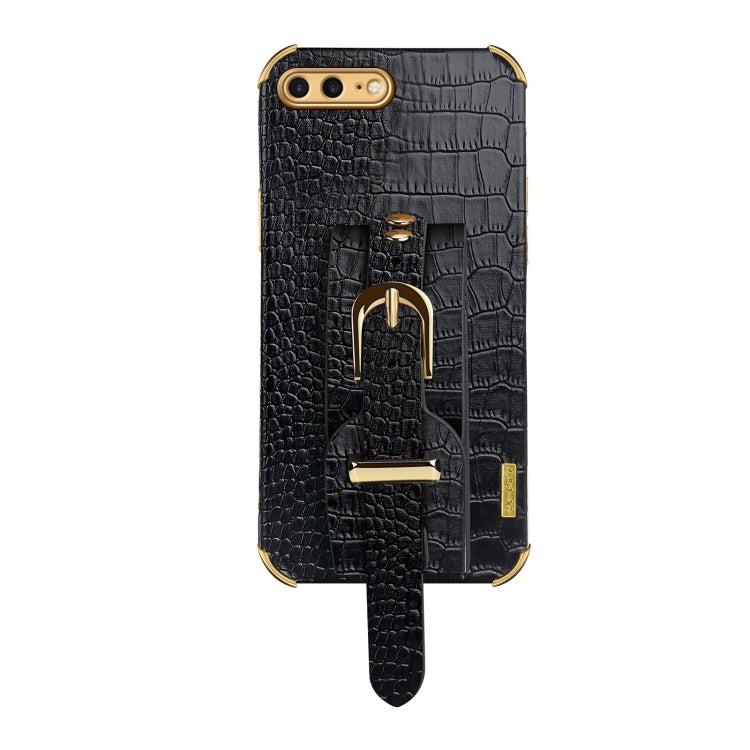 Funda TPU Electroplate con patrón cocodrilo y correa para iPhone 8 Plus / 7 Plus (Negro)