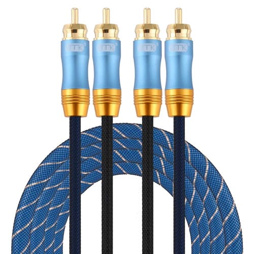 Cable de Audio Coaxial Emk 2 x RCA Macho a 2 x RCA Macho Chapado en Oro Trenzado de Nailon 2 m (Azul Oscuro)