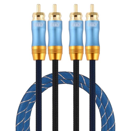 Cable de Audio Coaxial Emk 2 x RCA Macho a 2 x RCA Macho Chapado en Oro Trenzado de Nailon 1 m (Azul Oscuro) para TV Amplificador Cine en Casa DVD
