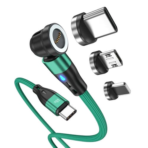 Cable de carga rápida Enkay PD60W Tipo-C a Tipo-C / 8 Pines / Micro USB Magnético 540° Rotación (Verde) 2 m