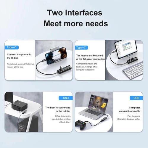 - Extensión de Puertos USB para ordenadores Portátiles y de escritorio con Conexión Tipo C
