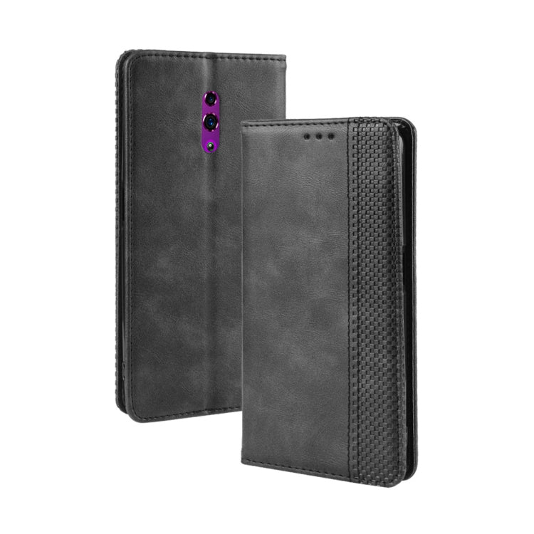Estuche de Cuero con Tapa Horizontal con Textura de Caballo Loco Retro con Hebilla Magnética para Oppo Reno, con Soporte, Ranuras para Tarjetas y Marco de Fotos (Negro)