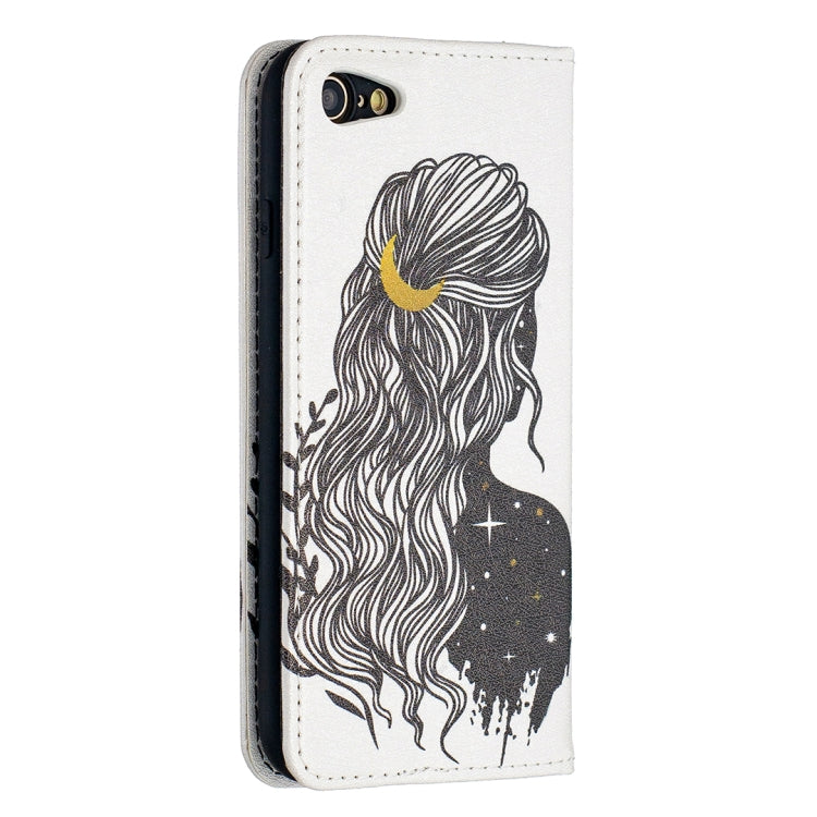 Estuche de Cuero PU para iPhone 8 y 7 con Tapa Horizontal Magnética, Soporte, Ranuras y Billetera (Niña)