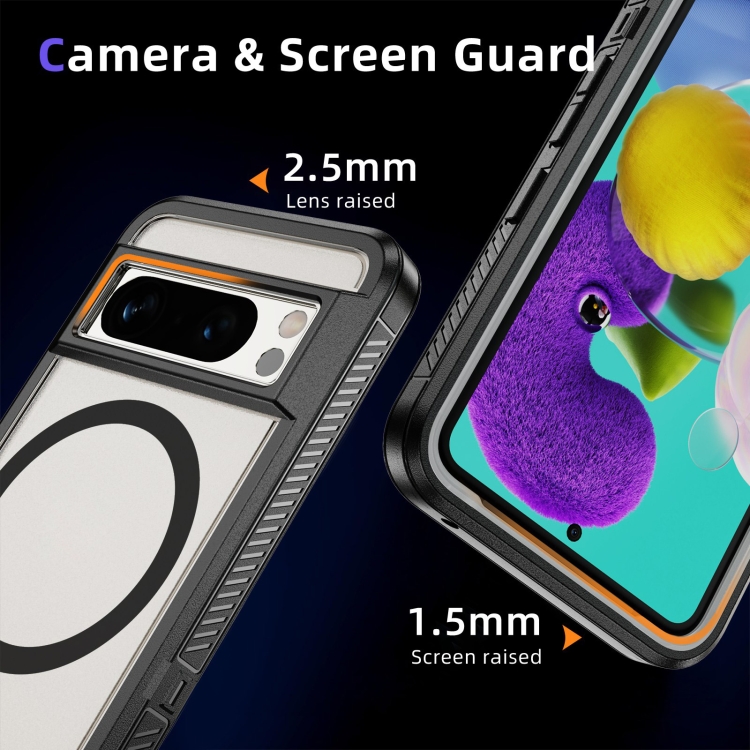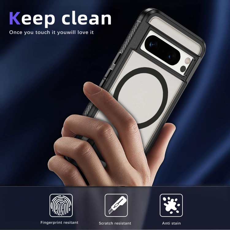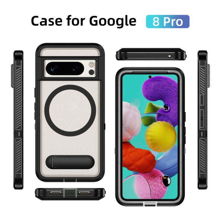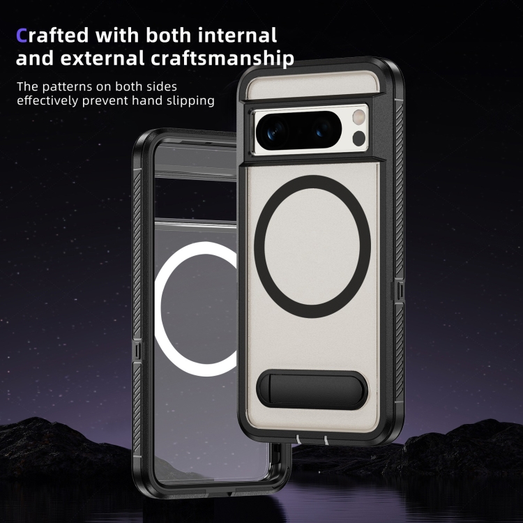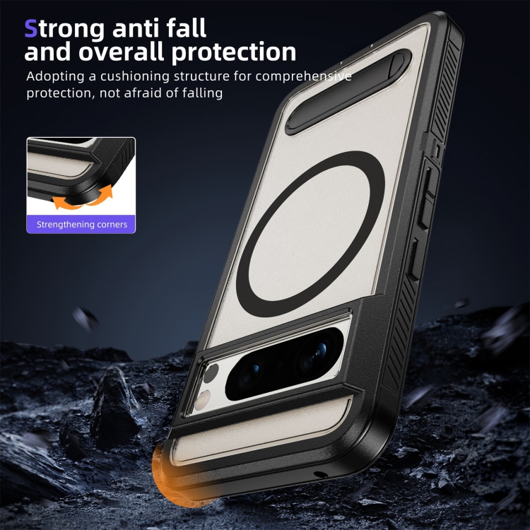 Estuche Híbrido TPU y PC con Soporte Magsafe para Google Pixel 8 Pro (Negro Transparente)