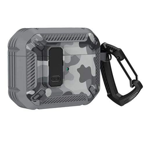 Estuche para Auriculares AirPods Pro Dos Tonos con Bloqueo y Mosquetón (Gris + Gris Camuflaje)