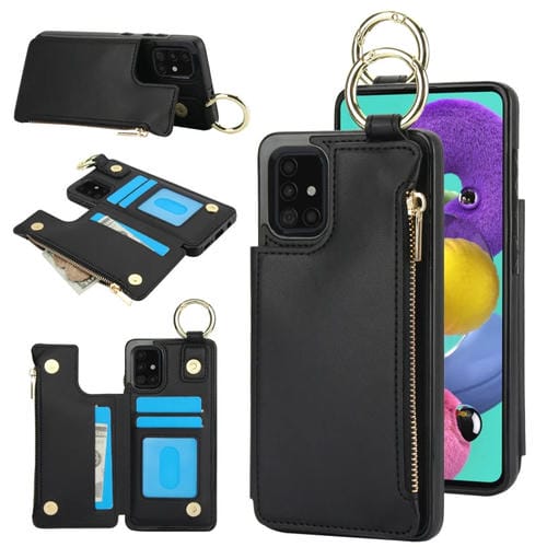 Estuche para Teléfono Samsung Galaxy A51 4G Rfld con Cremallera y Anillo de Doble Hebilla Antirrobo (Negro)