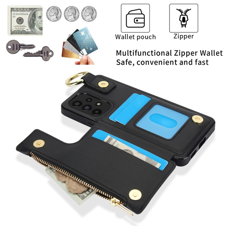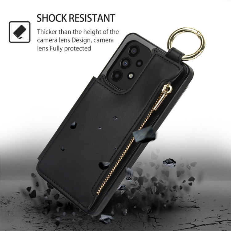 Estuche para Teléfono Samsung Galaxy A73 4G/5G Rfld con Cremallera y Anillo de Doble Hebilla Antirrobo (Negro)