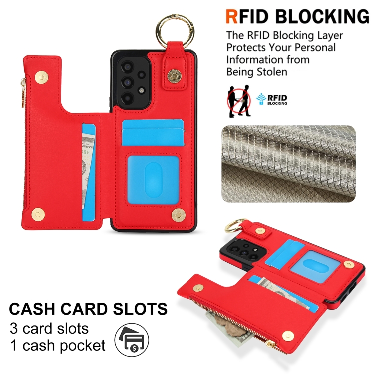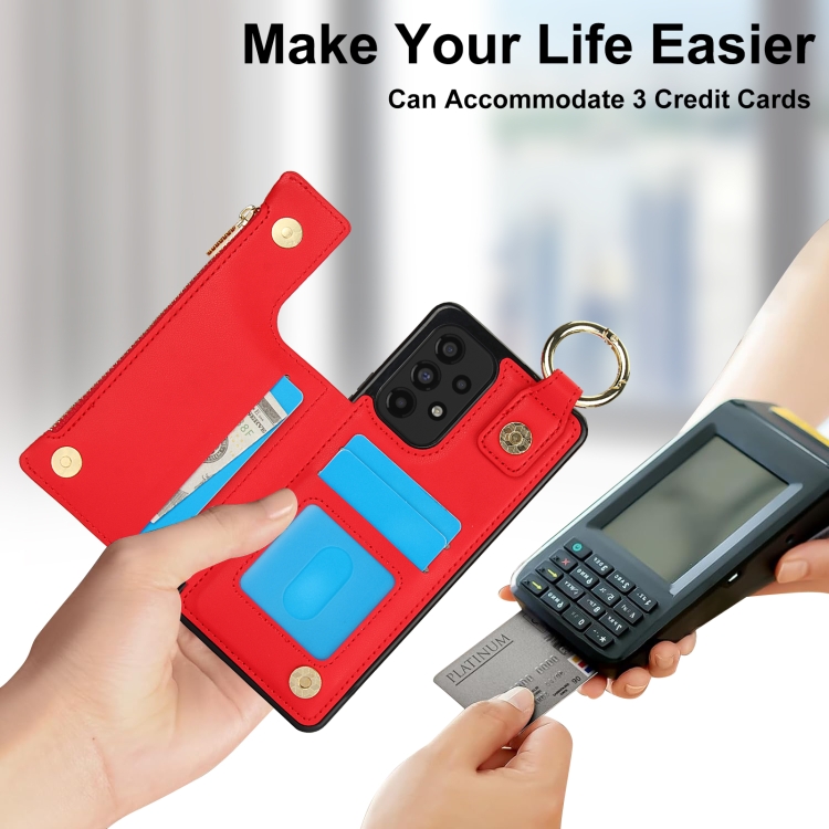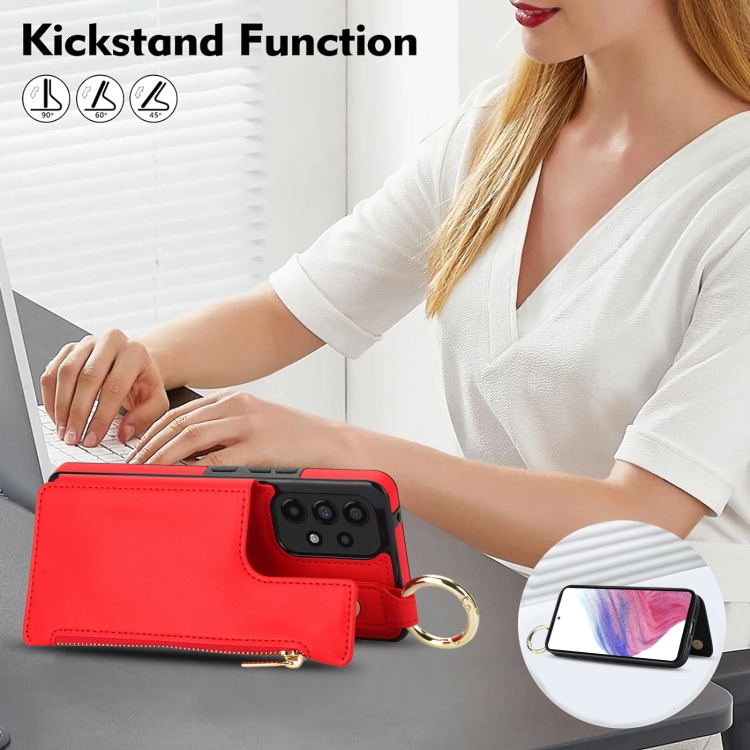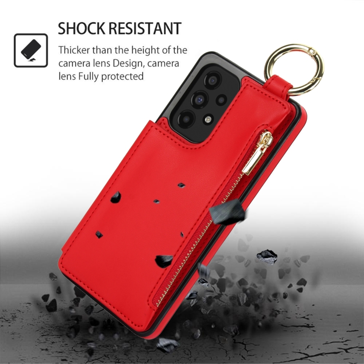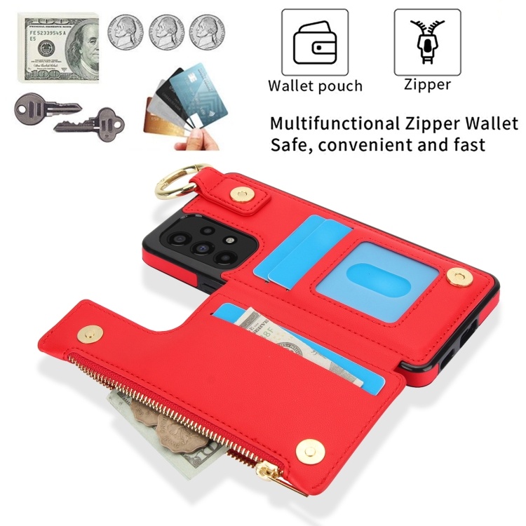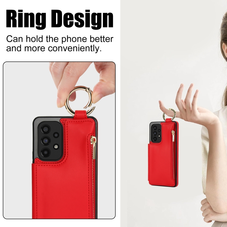 Estuche para Teléfono Samsung Galaxy A73 4G/5G con Cremallera y Anillo Doble Hebilla Antirrobo (Rojo)