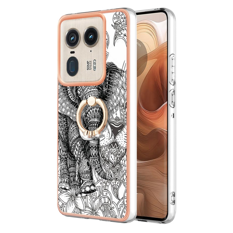 Estuche para Motorola Edge 50 Ultra con Galvanoplastia IMD Doble Cara y Soporte para Anillo (Elefante Tótem)