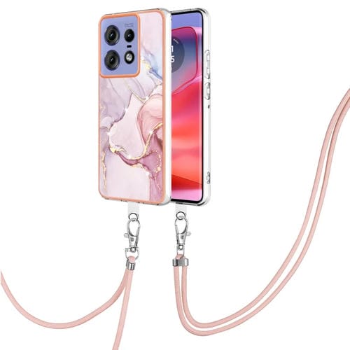 Estuche para Motorola Edge 50 Pro con Imd Doble Cara y Galvanoplastia Mármol con Cordón (Oro Rosa)