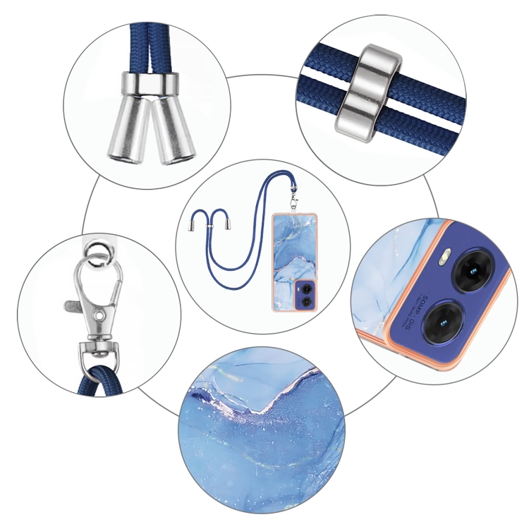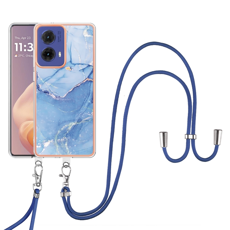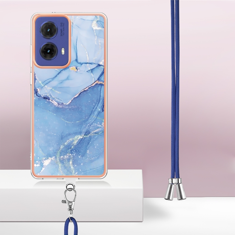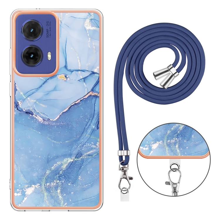 Estuche para Teléfono Motorola Moto G85 con Imd Doble Cara y Galvanoplastia Mármol con Cordón (Azul)