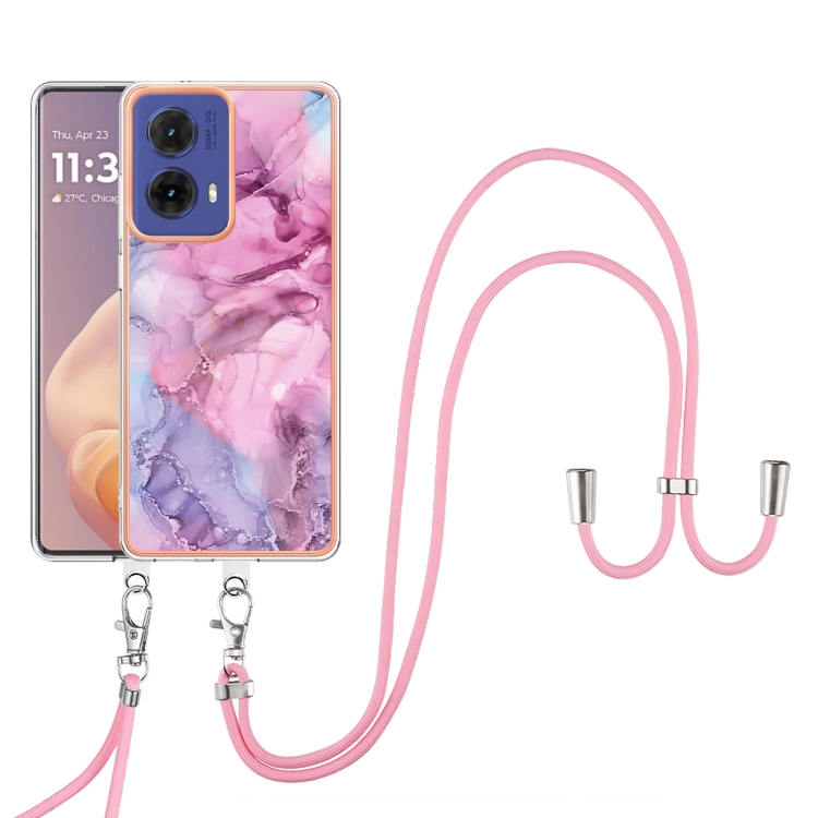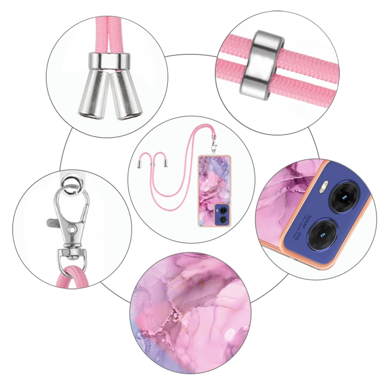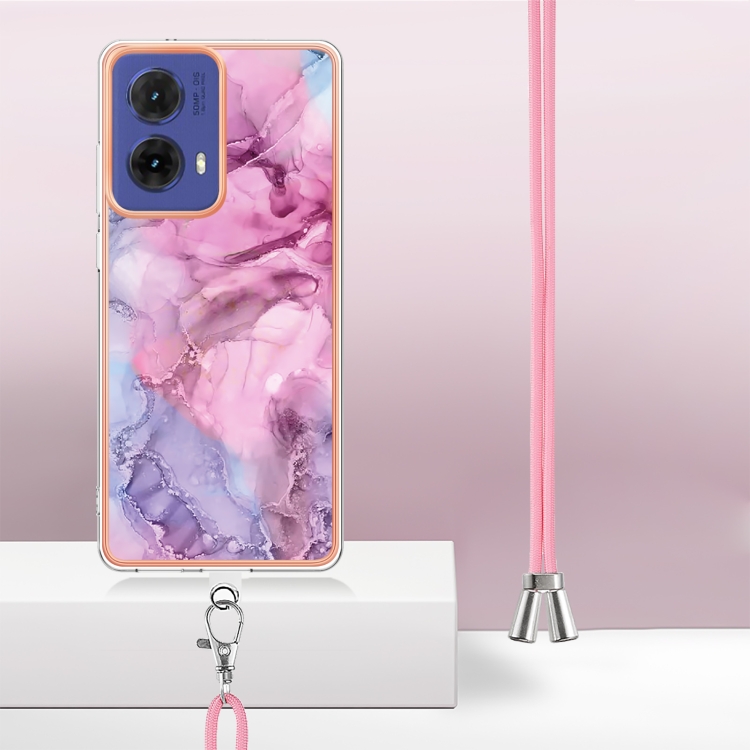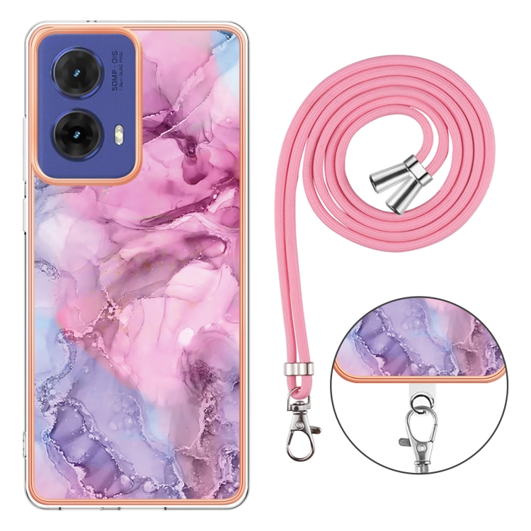 Estuche para Motorola Moto G85 con Imd Doble Cara y Revestimiento Mármol Galvanizado con Cordón (Rosa)