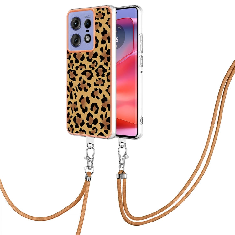 Estuche para Teléfono Motorola Edge 50 Pro con IMD Doble Cara Galvanizada y Cordón (Leopardo)