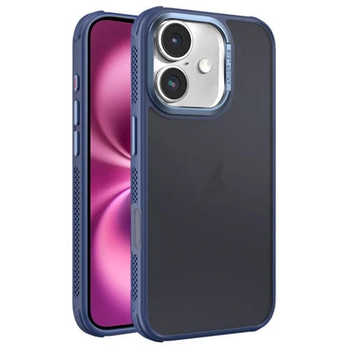 Estuche para Teléfono iPhone 16 Plus Marco de Lente Metal Esmerilado Sensación de Piel Enfriamiento Lateral (Azul)