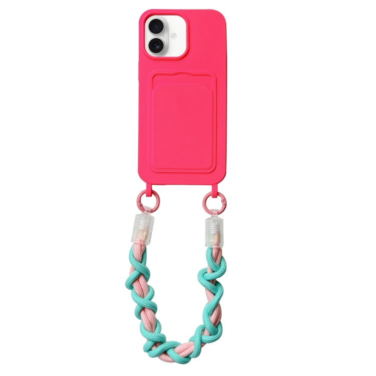 Estuche para Teléfono Dopamina iPhone 16 con Ranura para Tarjeta y Cordón (Rosa)
