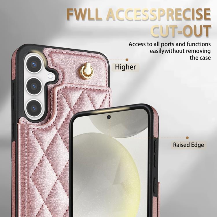 Estuche para Teléfono Samsung Galaxy S25+ 5G con Ranuras para Tarjetas y Hebilla Doble (Oro Rosa)