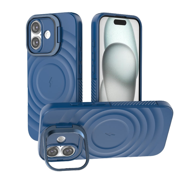 Estuche para Teléfono Magsafe iPhone 16 Soporte Marco Lente Corrugado (Azul Oscuro)