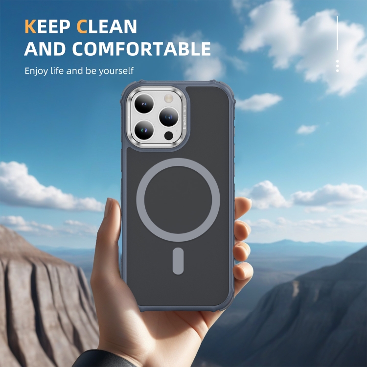 Estuche para Teléfono iPhone 16 Pro Soporte para Lentes Magsafe Diseño Serie Rainbow (Gris)