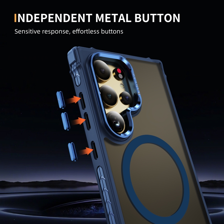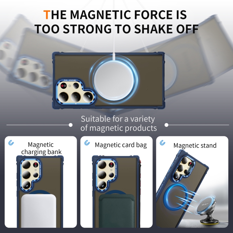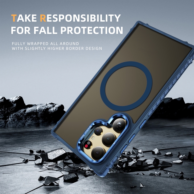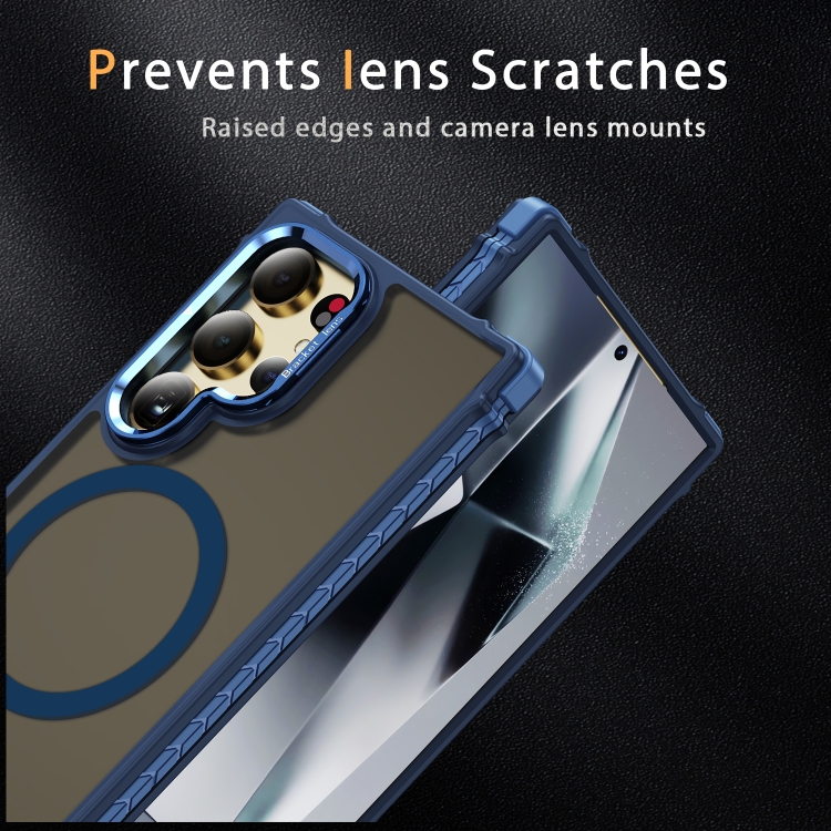 Estuche para Teléfono Samsung Galaxy S24 Ultra 5G Soporte para Lentes Magsafe Tacto de Piel (Azul)