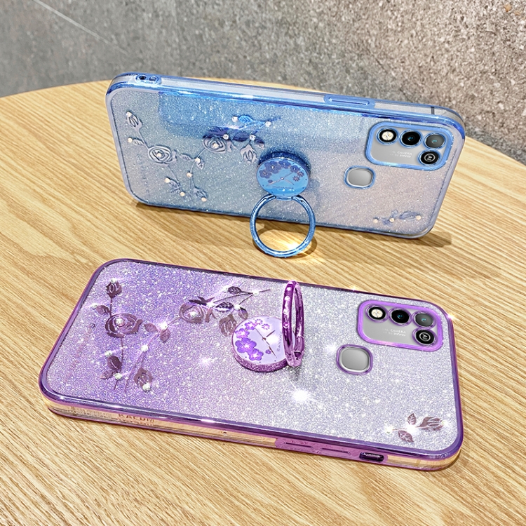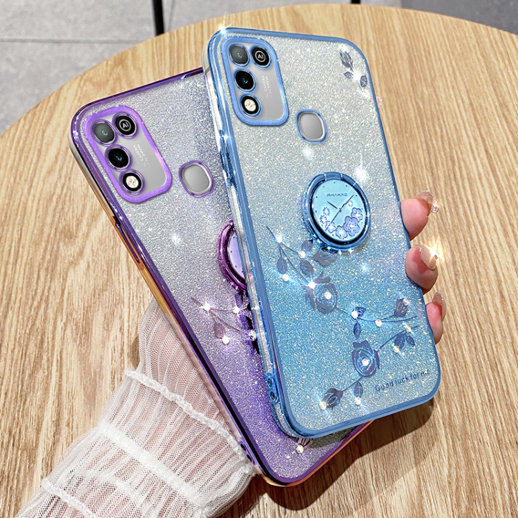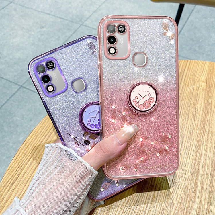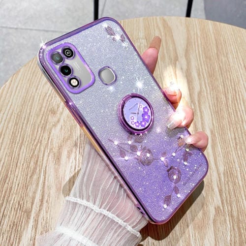 Estuche para Teléfono Infinix Hot 10 Play con Anillo Flores Inmortales y Purpurina (Morado)
