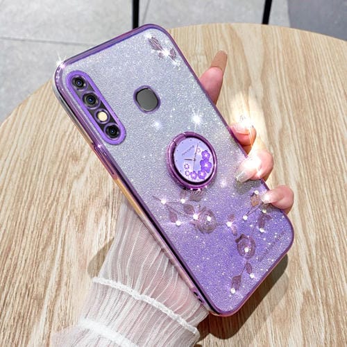 Estuche para Teléfono Infinix Hot 8 con Anillo de Flores Inmortales y Purpurina Degradada (Morado)